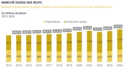 Pour faire face à la demande, les distributeurs doivent donc opter pour l'importation d'œufs, provenant de France, des Pays-Bas ou encore d'Allemagne. Le Conseil fédéral a par ailleurs augmenté le contingent d'œufs étrangers de près de 50% en juin dernier.